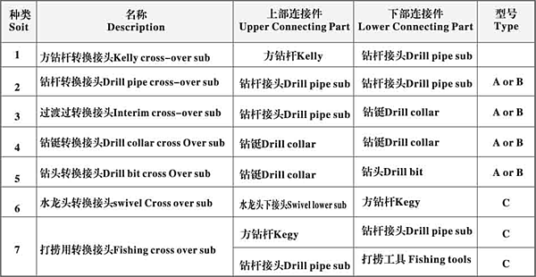 Cross-over sub acts for conversion and connection of drill stem component in petroleum,natrual gas and geology drilling work.It is used mainly for connecting fo upper drill tools and lower drill tolls during drilling operations.